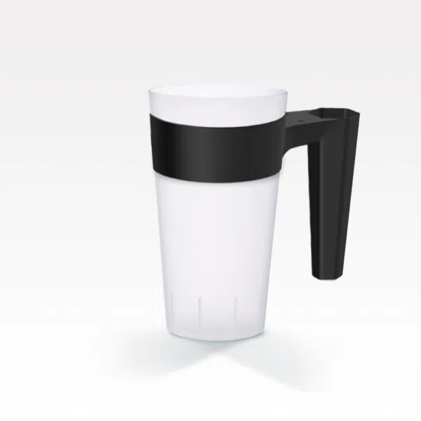 Ročaj se preprosto namesti na kozarec in omogoča držanje podobno kot pri klasični skodelici.