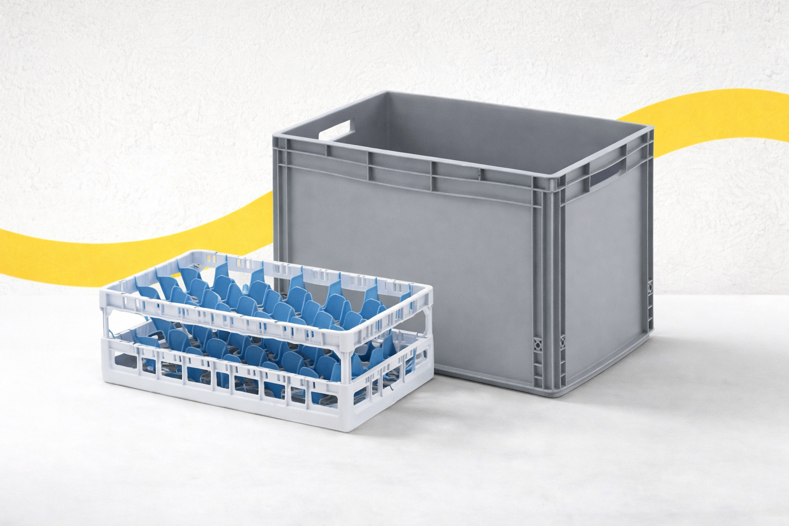 Poleg kozarcev in posode nudimo tudi dodatno opremo za transport, shranjevanje in uporabo na dogodkih. Dobavljamo in izposojamo zaboje za shranjevanje ter transport kozarcev, posode in pribora, prilagojene različnim dimenzijam. Na voljo so tudi profesionalni pladnji za pranje priznane nemške znamke.